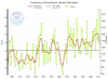 So what happens if our rainfall totals are increasing as a result of climate change? Will we be seeing these large events more often? Well, I’m glad you asked. Here in southern New England, our yearly precipitation totals have been increasing, and we have also seen a rise in the intensity of individual events. Other parts of New England have not seen large changes. Figure 1 shows how the annual rainfall total in Connecticut has increased over the last 110 years. The past 40 years have had higher totals, with almost all years greater than the average (solid black line in figure).