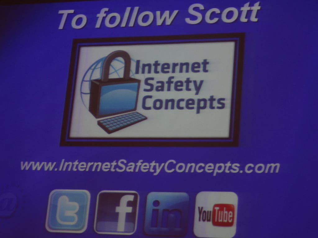 Detective Scott Driscoll, of InternetSafetyConcepts.com, provided parents at the Mansfield Middle School Monday with a presentation on Internet safety.