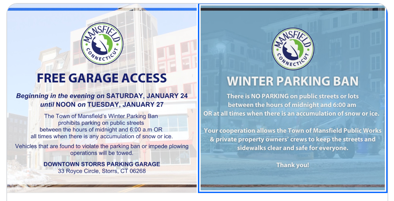 Residents and visitors to Mansfield are reminded that a winter parking ban is in effect for this