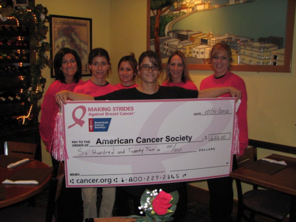 To support that effort, Lido's Italian Restaurant in Meriden raised nearly $900 to help the Society provide free resources and support to the one in two women newly diagnosed with breast cancer who turn to the Society for help and support. Dollars raised also fund groundbreaking research to find, prevent, treat and cure breast cancer, as well as help the Society ensure access to mammograms for women who need them.