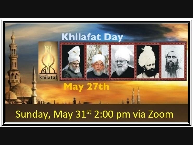 We believe that the awaited Messiah and Mahdi, Divinely Guided One, of the latter days came in the person of Hazrat Mirza Ghulam Ahmad, pbuh. The Holy Prophet Muhammad, pbuh, advised us to flock to this Mahdi and enter into a spiritual covenant of obedience with him even if we have to crawl over icy mountains because he would be the Khalifa or Representative of our Creator in the last days. Messiah Ahmad, pbuh, was revealed how he was the Khatam ul Khalifa or Seal of the Successors of Prophet Muhammad, pbuh, and the first manifestation of Divine power in our day and age. In his book “The Will” Messiah Ahmad, pbuh, prophesied the arrival of a second Divine manifestation after him which would last until Judgement Day. That promise was fulfilled with the establishment of the Khilafat of the Ahmadiyya Muslim Community on May 27th, 1908 when Hazrat Hakeem Nurruddeen, with whom God is pleased, was chosen after the demise of Messiah Ahmad, pbuh. That’s why we commemorate Khilafat Day every year on May 27th. We’re grateful for this glad tiding and being unified behind this spiritual leadership which is laying the foundation of a just, peaceful, and loving future.
