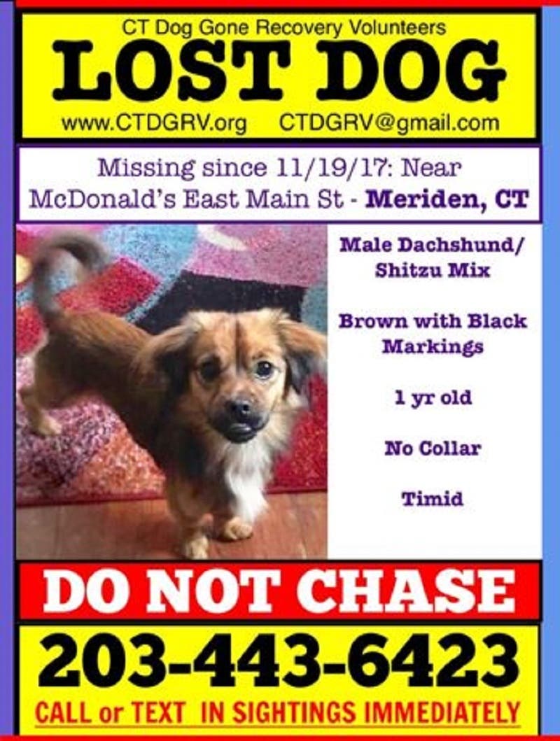 MERIDEN, CT — A 1-year-old dog has been missing from Meriden since Nov. 19. Read details below: