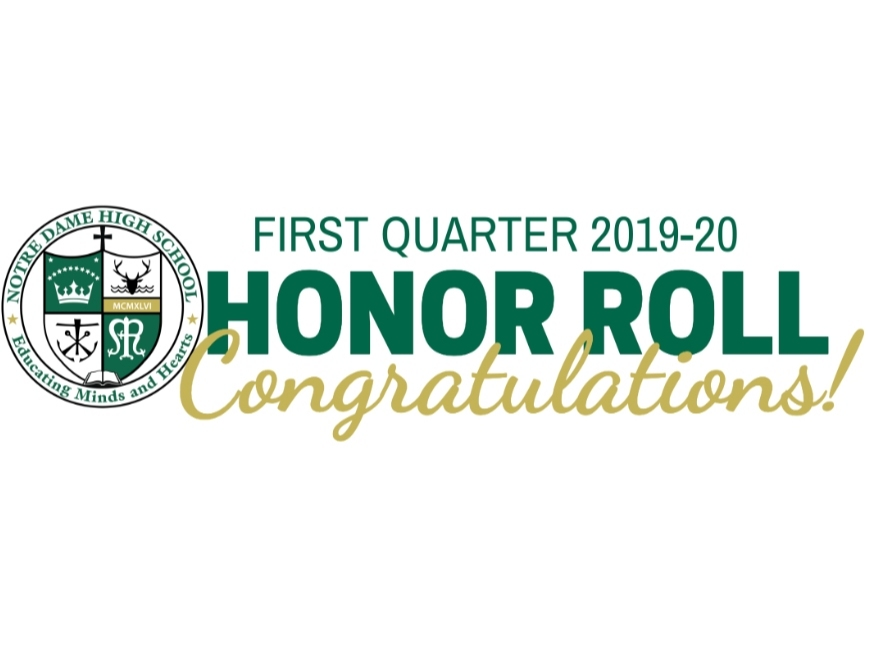 Notre Dame High School recently announced the Honor Roll for the First Quarter of the 2019-20 academic year