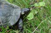 Snapping turtles can be large, heavy, and feisty, so if you are unable to “shoo” them across the road, pick them up by the back of their shells, NOT by their tail, to avoid a bite. Some people use a shovel or a stick to push or skid snapping turtles across the road. Always keep the turtle pointed in the direction it is going. If you turn it around in the other direction, the turtle will only make another attempt to cross the road. Also, DO NOT move the turtle to a “better spot.” Turtles have a home range and females often return to the same general area to lay their eggs.
