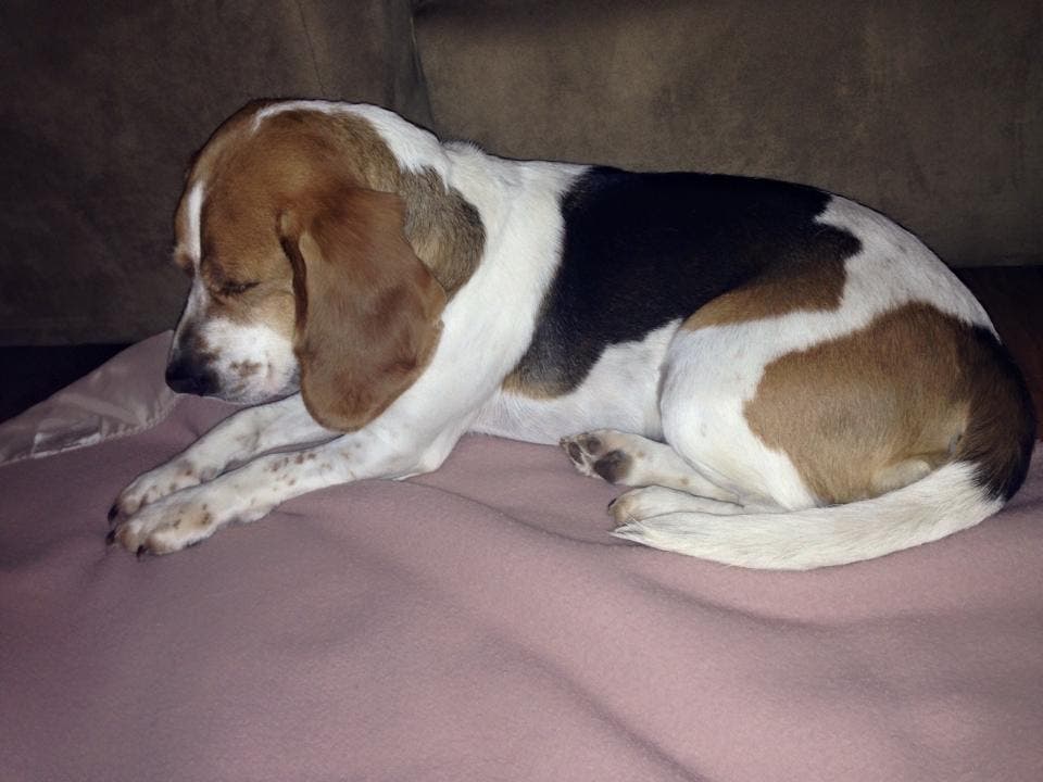 Her yellow Lab followed but was found in their front yard at approximately 2 a.m. The Beagle has not returned yet.