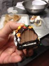After making the ice cream itself, the fun part can finally begin: preparing the creation. The “crew member” scoops out your selected flavor of ice cream based on the size you order. To keep the amount of ice cream you receive consistent, each serving size is compared to the size of a fruit, the “Like it” size being comparable to that of a tangerine, “Love it” to an orange, and “Gotta have it” to a grapefruit. It is then placed on the cold stone itself—the most famous aspect of the store and the most crucial for the mix-in process. On the sixteen-degree granite stone, the server makes a divot in your scoop of ice cream, pours any liquid toppings in a figure-eight formation, and adds the selected fruit and hard toppings. Everything is mixed in by performing a “chop, chop, fold, fold” technique, in which the ice cream and toppings are pushed into the scoop of ice cream and spread around within it. Carefully, the entire creation is pulled together in one neat bundle of frozen delight and placed in either a freshly made waffle cone or a cardboard cup.