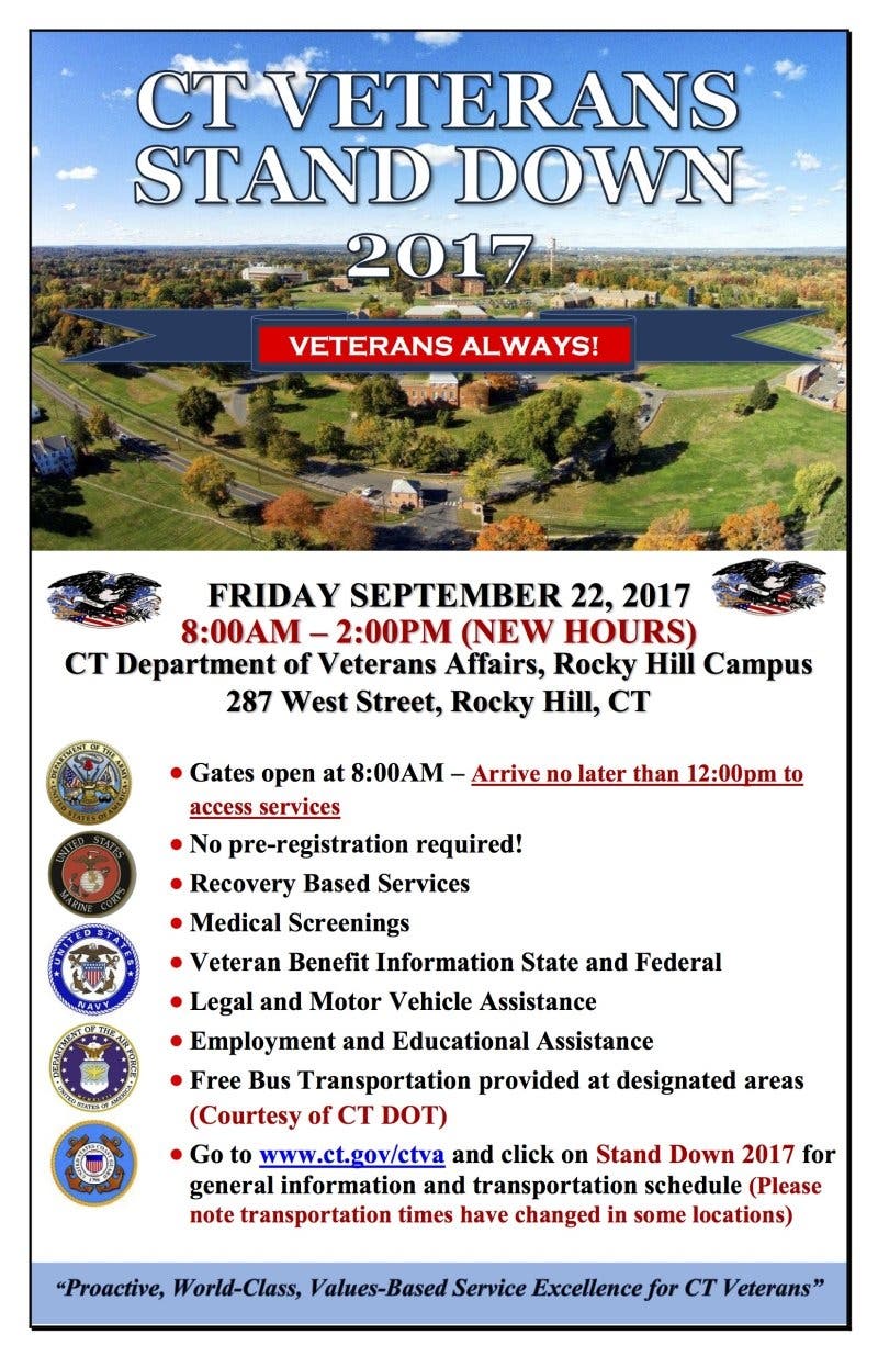 Arts & EntertainmentCt. Veteran's Stand DownFriday September 22ndBill Maune, Community ContributorPosted Tue, Sep 12, 2017 at 7:14 am ET ShareJoin the conversation