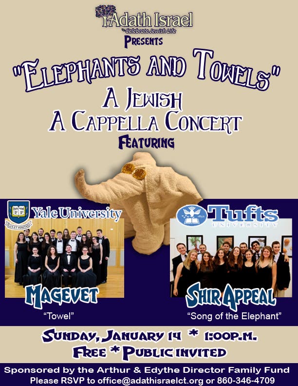 Arts & EntertainmentElephants And TowellsThis Sunday 1pm At Adath IsraelBill Maune, Community ContributorPosted Thu, Jan 11, 2018 at 1:32 pm ET ShareJoin the conversation