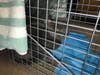 The kitten was left in a cage outside of a building overnight.