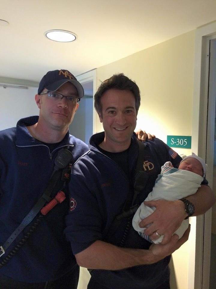 This morning at 11:10 a.m., the crew of Engine 3 delivered a healthy baby boy. Pictured below are Firefighter Paul Brann (Left) and FF Dan Canevari (Right), the crew of E3....and the baby boy that they delivered. Great job guys!