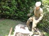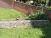 A stone seating area will eventually be placed atop the brownstone marker, allowing visitors to enjoy the historical society's lush herb garden.