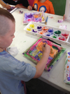 Little Picassos and Georgia O'Keeffes make color, shape and line come alive as they dip brushes into palettes of neon, glitter and primary-color paints to create display-ready masterpieces to take home.