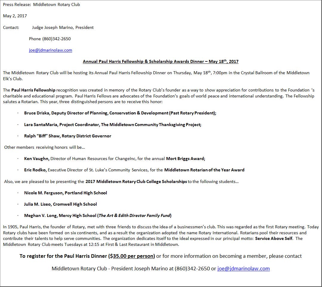 Middletown Rotary Club May 18th 6pm