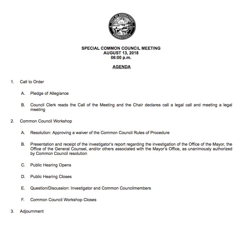 Monday, August 13th at Special Common Council Meeting
