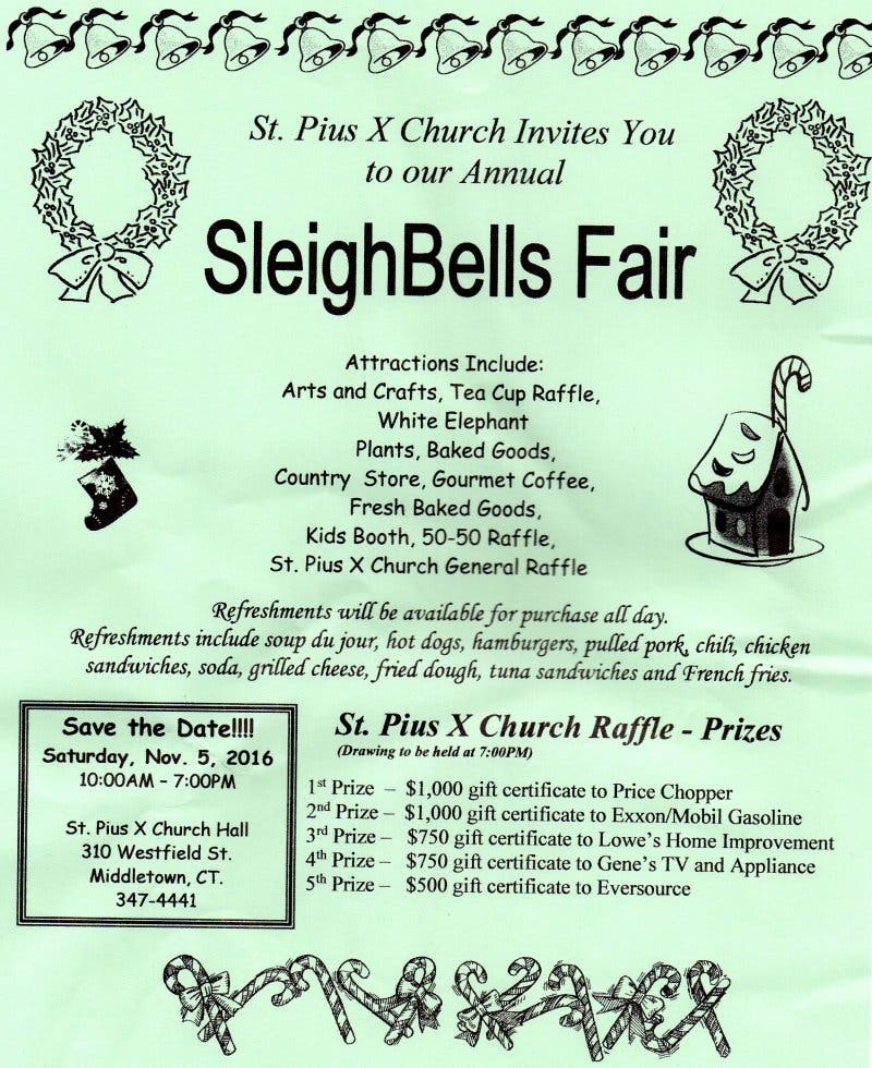 Arts & EntertainmentSt. Pius SleighBells Fair!Saturday November 5thBill Maune, Community ContributorPosted Sun, Oct 30, 2016 at 9:48 pm ET|Updated Thu, Oct 12, 2017 at 3:35 pm ET ShareJoin the conversation