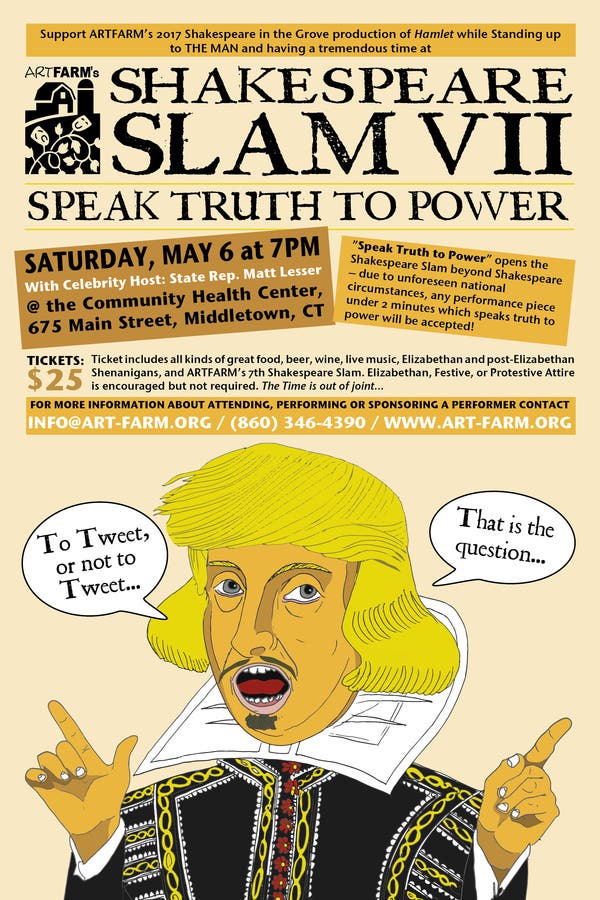 ARTFARM's Shakespeare Slam VII: Speak Truth To Power is just 8 days away, and a great friend just RAISED THE STAKES for Slam Perfomers!!!! Imagine yourself here: