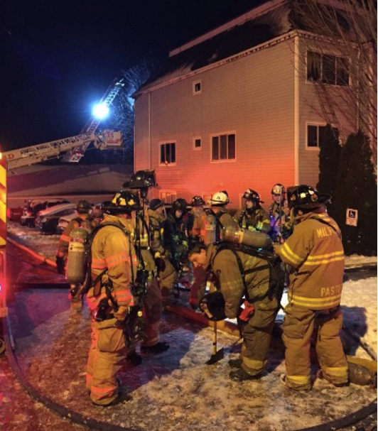 Over 30 firefighters responded to assist in the effort. Minor injuries were reported due to fire crews falling on ice during the incident, officials said. The Red Cross of Milford was on scene to assist occupants that were displaced by the blaze.