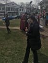 Instead of snow on the ground it was sunny and 60 degrees. If they came back on Monday to shoot there may be snow on the ground.