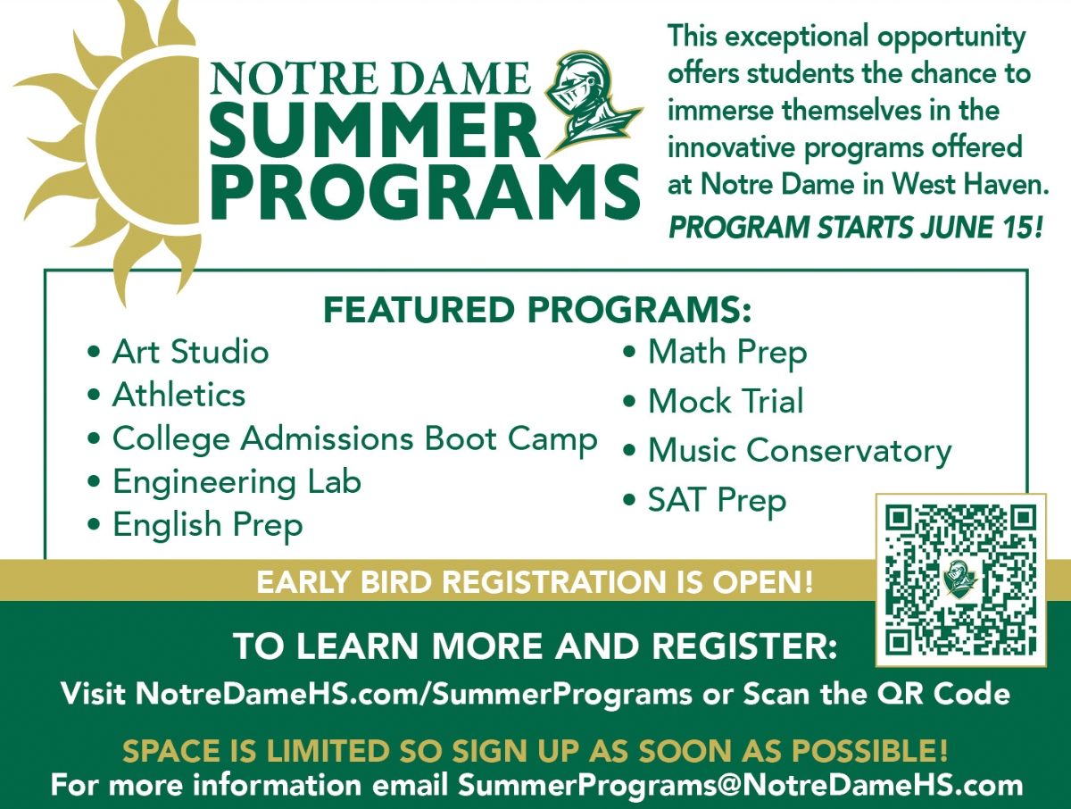 Notre Dame-West Haven is thrilled to announce its 2026 Summer Programs, kicking off on June 15 and designed for students in grades 7-12.