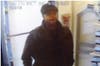 The suspect in the store is described as a Hispanic who stands about 5-foot-8, has a heavy build, is in his late 30s, and has short hair and a thin moustache. He was wearing a black jacket, a black/gray striped shirt and sunglasses resting on the top of his head, police said.