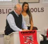 Caitlin’s parents, Dr. Mark Stapleton and Kim Stapleton, and her 13-year-old brother, Kevin Stapleton, were on hand to witness the signing as was Milford Superintendent of Schools Dr. Elizabeth Feser.