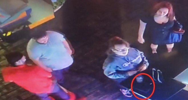 Video surveillance shows the victim leave her purse behind at a table after playing a game. About 30 minutes later a group of four people walk into the same game area with the purse still on the table, police said.