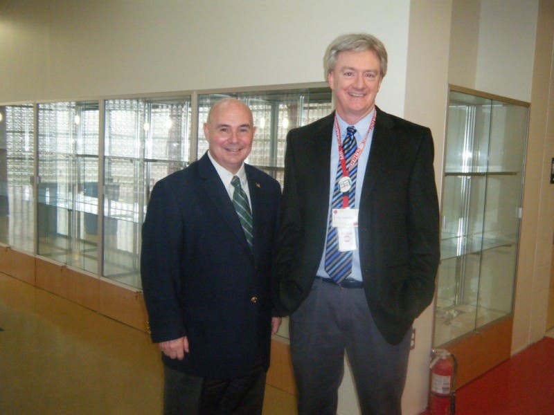 Photo cutline: Cummings is pictured on the right, next to Schools Chief Operations Officer James L. Richetelli Jr.