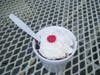 Next up was "Moose On The Loose." The silly name made me laugh as I enjoyed every bite. The kid's size offered a generous portion and was more than I could eat. Everything meshes well in this cup. The ice cream itself was vanilla with fudge ripples and tiny peanut butter cups. This flavor is a treat within itself. Then you add all the toppings and it turns into--wow! I worked from top to bottom starting with a cherry, whipped cream, then ice cream with peanut butter sauce. The next layer was hot fudge over a dark chocolate brownie (the brownie wasn't warm--it was on the harder side). So you have vanilla ice cream, peanut butter cups, hot fudge, more peanut butter, whipped cream and a cherry. This was really good.