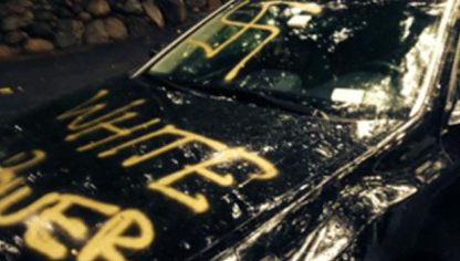 In early August Patch reported two separate incidents of vandalism in Pearl River,New York. In one incident, cars were spray-painted with racial epithets and tires were slashed on Lincoln Ave. The second incident happened over the weekend of August 2-3 when a farmer’s greenhouses were covered with racial slurs and graffiti. Vandals tore down a flag pole, trampled an American flag, released the farmer’s blind bunny and covered his greenhouses with swastikas and racist slogans.