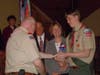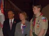 Representatives of the Connecticut Yankee Council's Pomperaug District presented Ball with an Eagle Scout Yankee Council Strip and a National Catholic Committee on Scouting certificate.