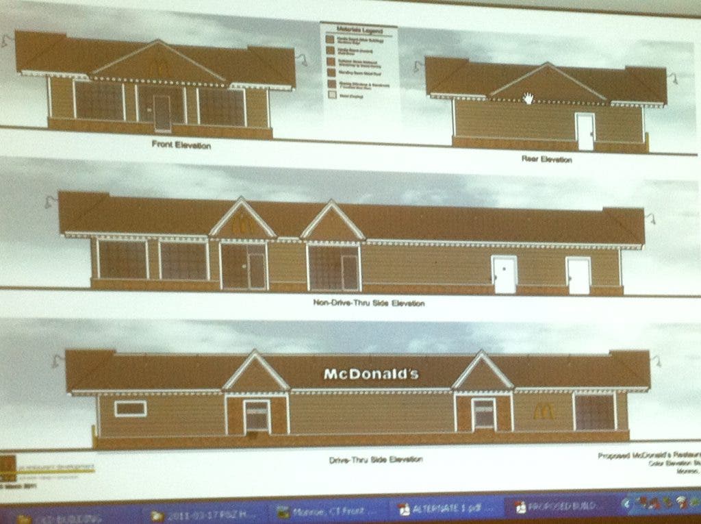 Representatives of the applicant for a new McDonald’s restaurant at 579 Main Street unveiled a new architectural plan on Thursday aimed at overcoming the aesthetic objections of members of the Monroe Planning & Zoning Commission.