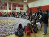 The loop chain was supposed to be stretched out on the school football field, but wet weather made teachers and students move the event to the gym inside Masuk. An NBC news camera rolled as students crowded around the chain. Cheers filled the room after O'Rourke's daughter, Maya, 4, stapled the very last link.