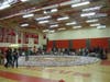 A color-coded paper-link chain was wound around itself many times over, forming a giant circle in the middle of the Masuk High School gymnasium floor Tuesday morning. All told, there were 75,000 links, each representing a digit of pi.