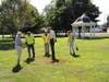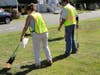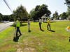 DOT officials walked the property with town leaders and made markings in the grass to show where to put plants in the ground.