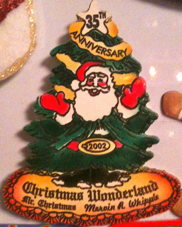 The magnet commemorated the 35th Anniversary of Christmas Wonderland, signed by Mervin R. Whipple, known by most as Mr. Christmas. Other souvenirs sold at his wonderland included sets of postcards with images of his collection and chapel.