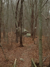 The forest also features two other large rocks, little waterfalls, several stone foundations and depressions of former dwellings, and a little cemetery with a beautiful stonewall.