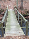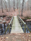 When folks cross an old wooden pedestrian bridge over Stony Creek, they are greeted with several white “No Trespassing, No Hunting, Private Property” signs nailed to trees.