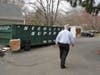 On many days since the fire, shade shelters have been put up on the property, and you can see groups of people working in them, wiping and sorting and cleaning. Thursday, what could be saved was in boxes in a Pod. A large Dumpster was being filled with debris, ruined stuff, piles of plaster. More recently, you can see piles of plaster outside the house, and more belongings and equipment outside to be wiped off.