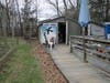 Niantic beaches, like T-shirts, come in small, medium, and large. At the small end is Hole-in-the-Wall Beach, tucked between a stone jetty and a grassy park (more on that below). It is also the Western terminus of the Niantic Bay Boardwalk. The Boardwalk runs parallel to the train tracks, with a view of the Bay and Long Island Sound. A number of benches face the water. You’re fully connected to the outside world here, between the Millstone Power Station and passing Amtrak trains, yet the walkway feels sheltered and calm.
