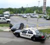 On 08/28/12 shortly after 6:00 a.m. Norwich Police responded to a report of a suspicious person in the parking lot of the Backus Hospital. Norwich Police Department officers responded to the scene, located the male subject seated in a car. The officers parked to block the suspect car. As the Norwich officers were talking with the male subject (and) with a family member, the suspect suddenly backed into one of the cruisers and pulled forward driving at the officer and the family member. The officer was able to push the family member out of harm's way and the officer drew his service weapon. The suspect car mirror struck the officer and the Norwich officer discharged his weapon at the suspect striking him.
