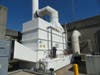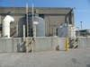 At this point, the odors are removed in a large chamber called the scrubber. In this silo-like building, a mixture of sodium hypochlorite and sodium hydroxide – a caustic substance, plus bleach, plus water – is sprayed over whiffle-ball like devices inside the giant tank. The scrubbers take the stink out.