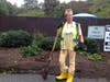 Flo Turner has been a Montville employee for 10 years. And she loves her job. Flo was seen Thursday in rain boots smiling as she worked at the Town Transfer Station shoveling dirt.