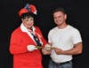Bye Bye Birdie is a classic show being produced by many a community theatre lately, perhaps because it appeals to a wide variety of theatergoers. Teens enjoy watching the large number of teens in the cast, and the setting in the fifties is appreciated by those of us that were around then. This production, with wonderful costumes by Renee Purdy, looks like the fifties without every single girl in a poodle skirt. The large cast includes sixteen principals, a small adult ensemble, a huge teen ensemble, and even a small youth ensemble. The large outdoor stage easily held them all, especially during the beautifully staged "The Telephone Hour." Many of Director Donald E. Birely's productions have included young people and he easily includes all them in this show. The young Evan Smolin was wonderful as the youngest MacAfee, "Randolph."
