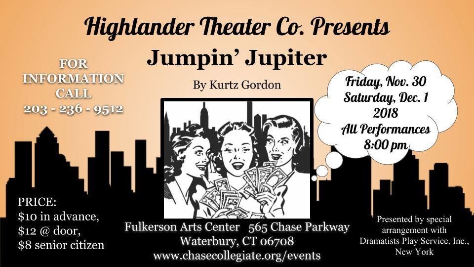 WATERBURY, CT - Jumpin’ Jupiter the lively comedic manuscript of Kurtz Gordon, American playwright, will come to life at Chase Collegiate School - Fulkerson Arts Center, this Fall: November 30th & December 1st at 8:00 p.m.