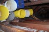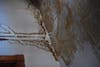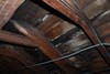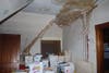 The original roof is leaking in one spot, and the building’s staff has set up buckets to catch the water. Other parts of the interior are visibly rotting, particularly on the fourth floor, and holes are visible in the dark attic of the building. Some rooms where offices are located have ceilings that have apparent water damage caused by the leaking roof.