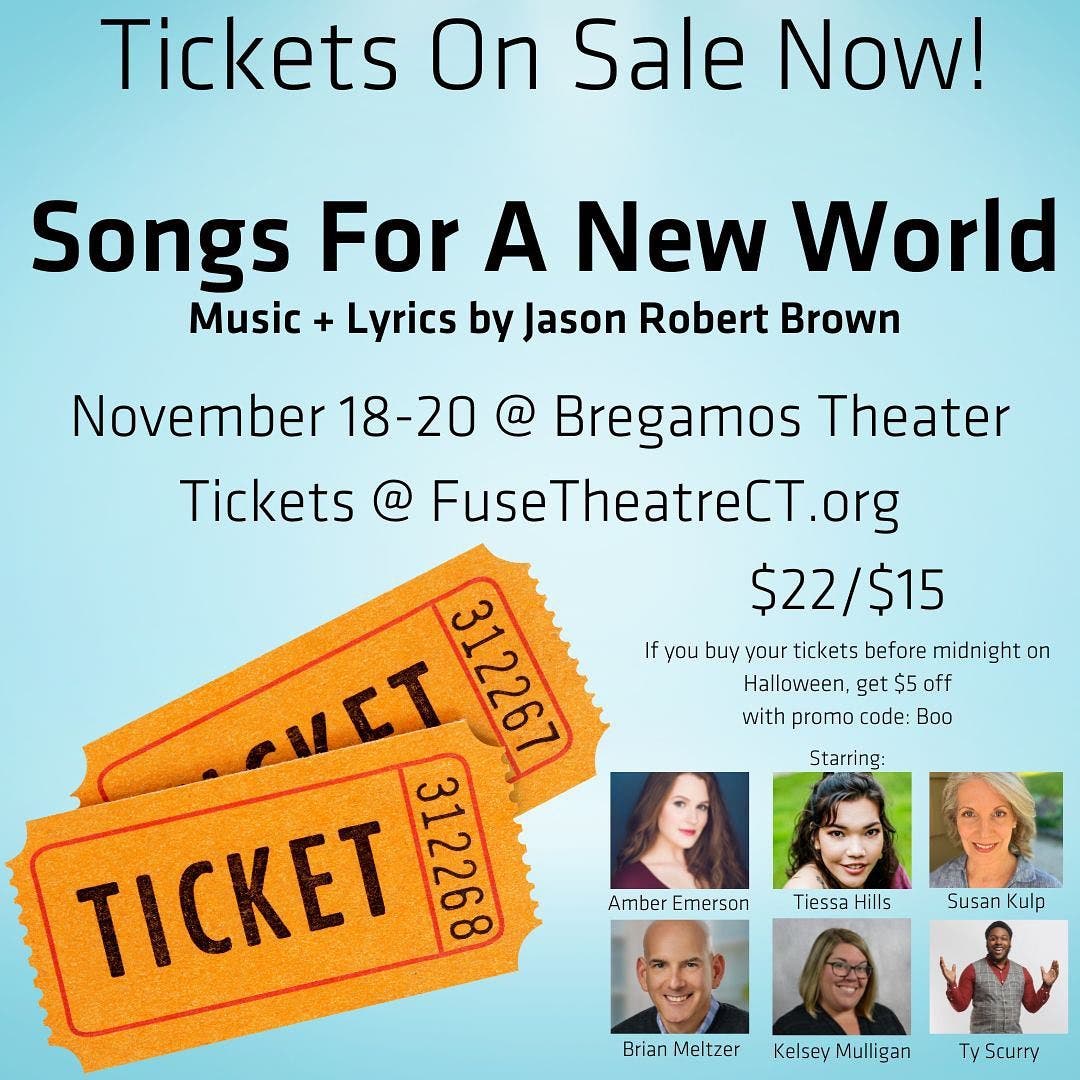 For further information and to purchase tickets, visit FuseTheatreCT.org. Songs For A New World will be performed Friday, November 18 at 7:30 p.m., Saturday, November 19 at both 3 p.m. and 7:30 p.m. and Sunday, November 20 at 3 p.m. at Bregamos Theater, 491 Blatchley Ave, New Haven, CT. Tickets are $22, general admission. For both the Saturday and Sunday matinees, $15 student and senior tickets are available. The venue is handicap accessible. Masks will be required for all audience members.