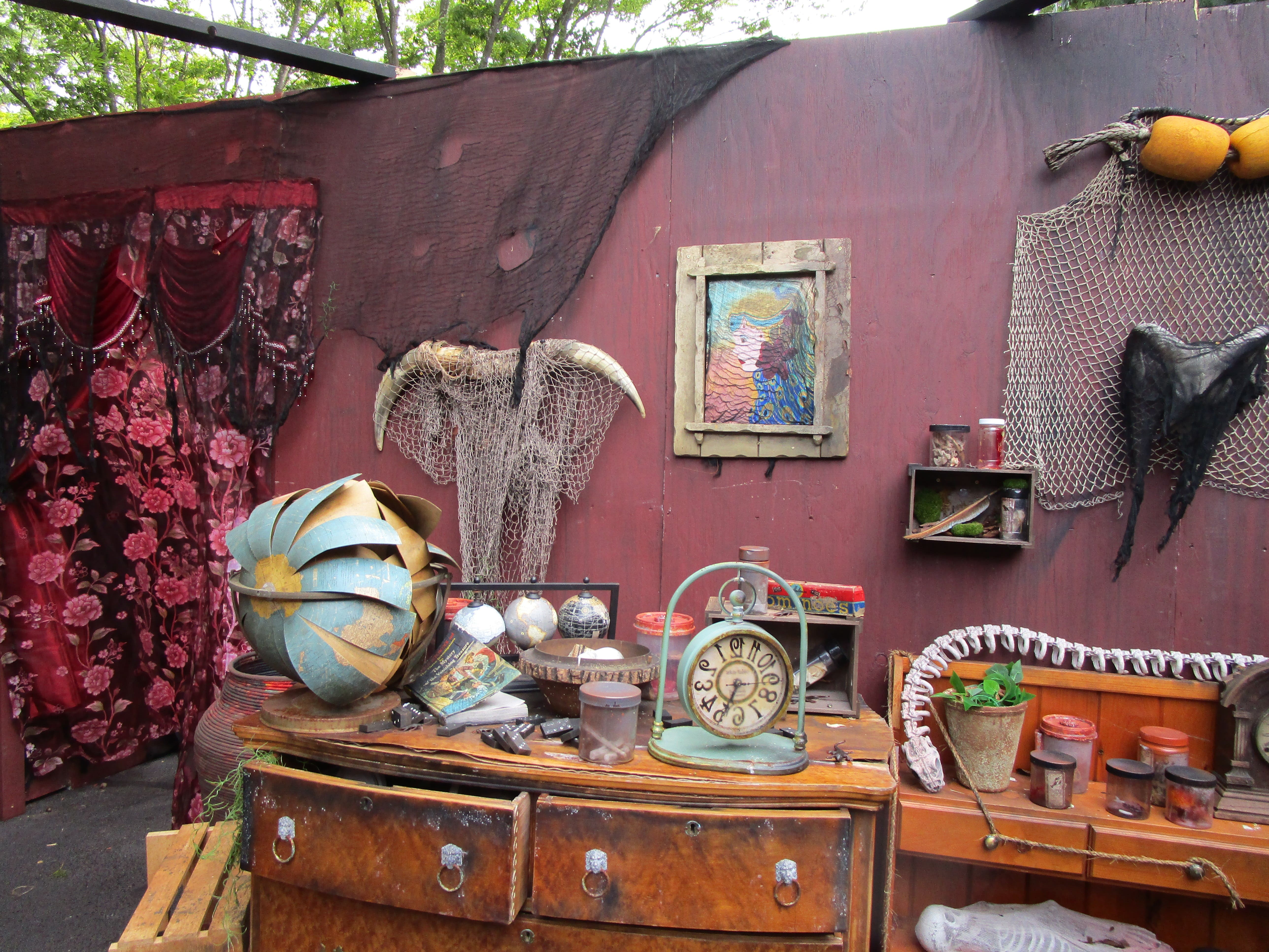 I got to walk through The Root of All Evil, Spirits of the Swamp and MediEvil walk-through mazes. Hemphill told me that additional costumes had to be purchased for the fifty actors that now make up the cast, some summer employees augmented with those who came out to audition.