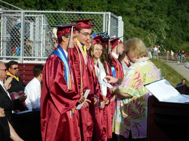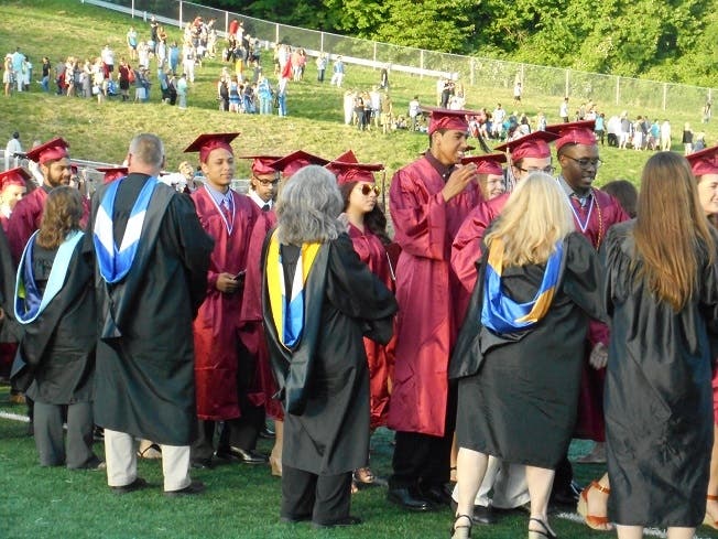Graduation exercises for the Naugatuck High School class of 20167 were held on a very sunny Wednesday evening at Veterans Field on the high school campus. NHS teachers Michele Russell and George Macary once again served as Graduation Directors.