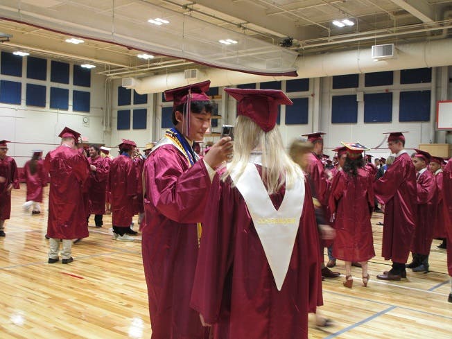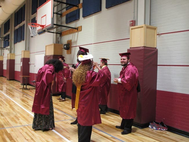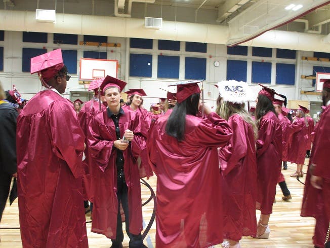 These photos were taken in the gym before the ceremony began, as the graduates lined up in order to process toward their seats.