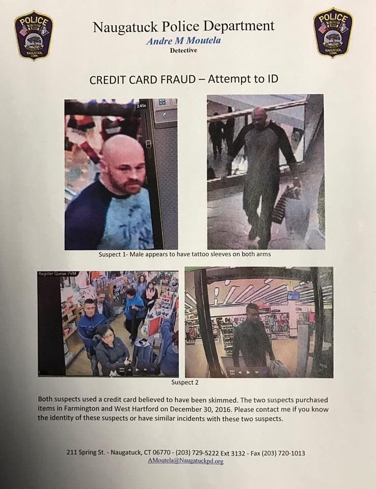 NAUGATUCK, CT — Naugatuck police are searching for suspects who are wanted in connection with a credit card skimming investigation, Police Lt. Bryan Cammarata said.